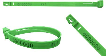 Bandseal 3NH # 070H19PP – Selo plástico com largura 9.5 mm (3/8") comprimento total 190 mm (7 3/4") com numeração em "hot stamp".