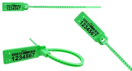 Lacre Clipinlock 2/300 IML TRANSFER CB #067RIMLCB130PP – Numeração e personalização mais interpretador em código de barras 128C aplicado sobre lâmina do selo. Comprimento total de 387 mm. Resistência à tração: 30kgf.