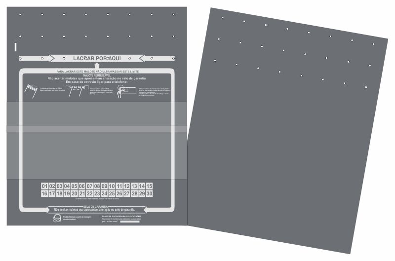 Envelope co-extrusado em polipropileno com 300 microns de espessura (150 por parede), com sistema de fechamento plástico reutilizável, lacrado com selo Newlock.