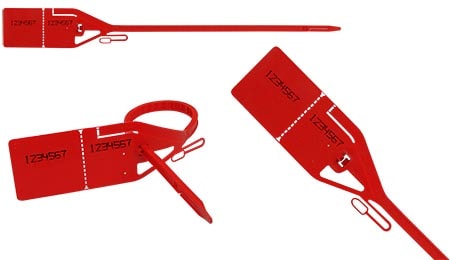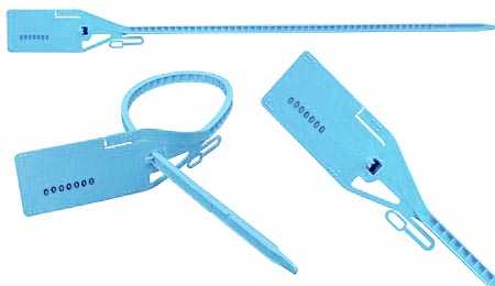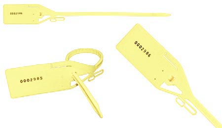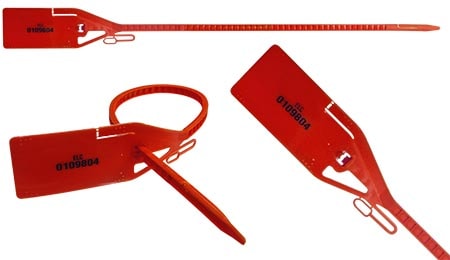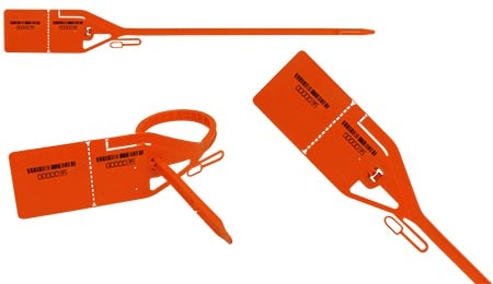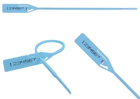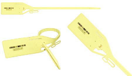 Lacre de segurança Riplock C2 IJ #061I21PP – codificados com 7 dígitos e personalização em letras de nosso padrão. Comprimento total 240 mm.