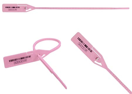 Lacre de Segurança Riplock C3 IJCB #061ICB12830PP - codificados com 7 dígitos, código de barras e personalização em letras de nosso padrão. Comprimento total 330 mm, com porta-etiqueta. Fornecido em esteiras com 8 unidades.