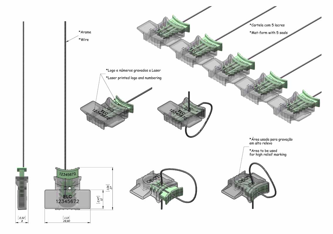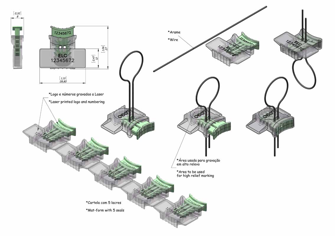 *No Lacre de segurança ALock (SLM e CB) o arame é comercializado separadamente em rolos ou pré-cortados nas medidas padrão, mediante consulta.