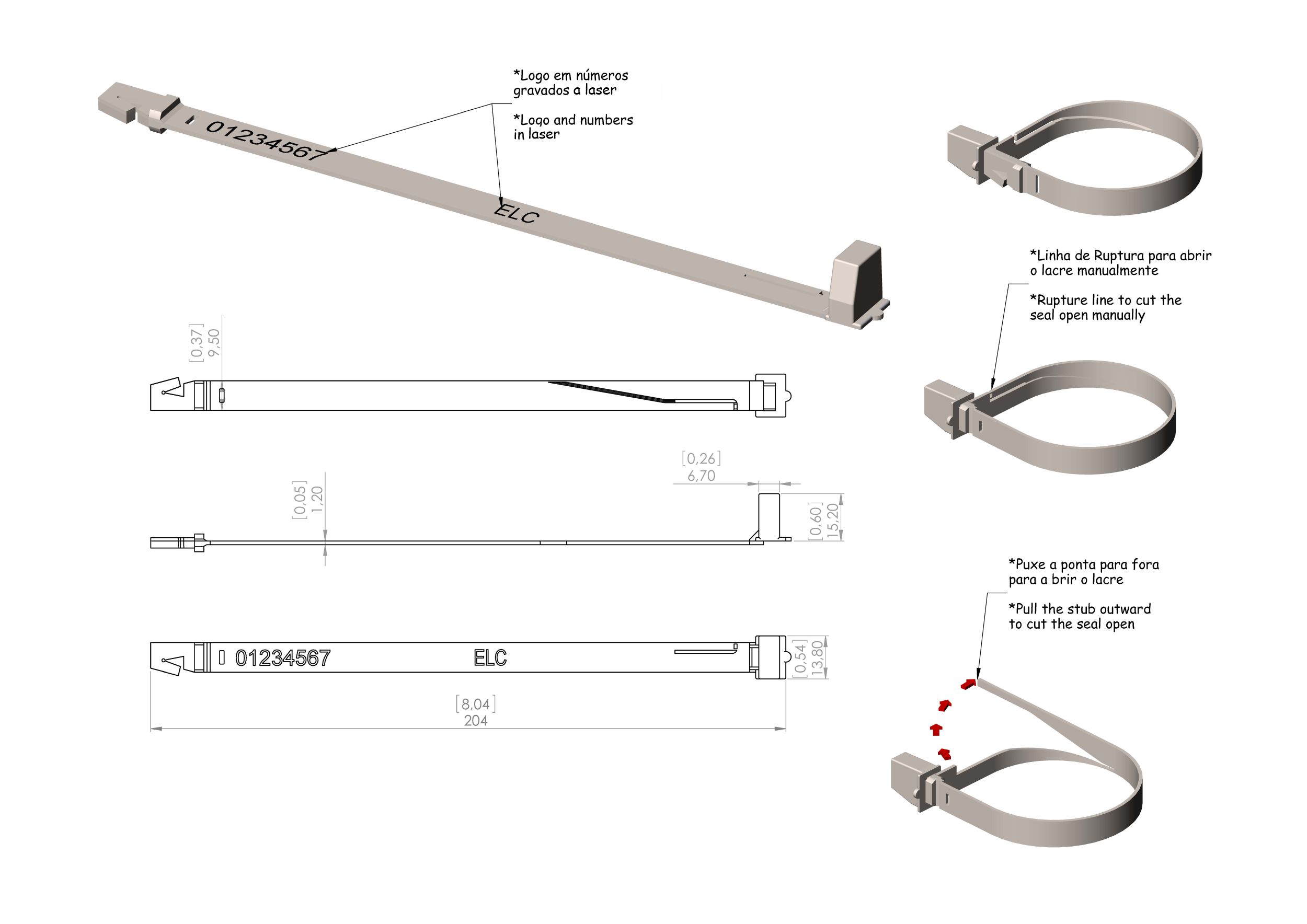 O selo plástico Bandseal foi criado para tarefas que requerem, ao mesmo tempo, segurança e resistência física. O Bandseal 3 permite abertura manual, sem ferramenta. O sistema de numeração em alto relevo elimina a incidência de erros na transcrição. Personalização de logotipo ou marcas do cliente também podem ser moldadas em alto relevo. Disponíveis nos comprimentos fixos de 16, 19 e 21 cm, (modelos em plástico) e 21e 22 cm (modelos metálicos).