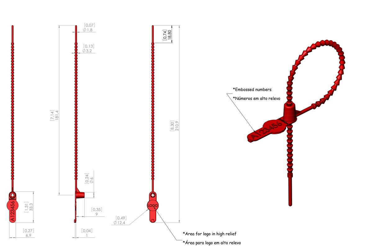 Lacre Plástico Espinha de Peixe Elckette N - Codificação em Alto Relevo