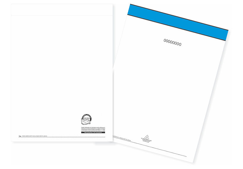 Os envelopes de segurança adesivo são fabricado em filme plástico cinza, com fechamento adesivo "hot-melt" de alta aderência. Também disponível com recibo destacável numerado. Aprovado pelos Correios.