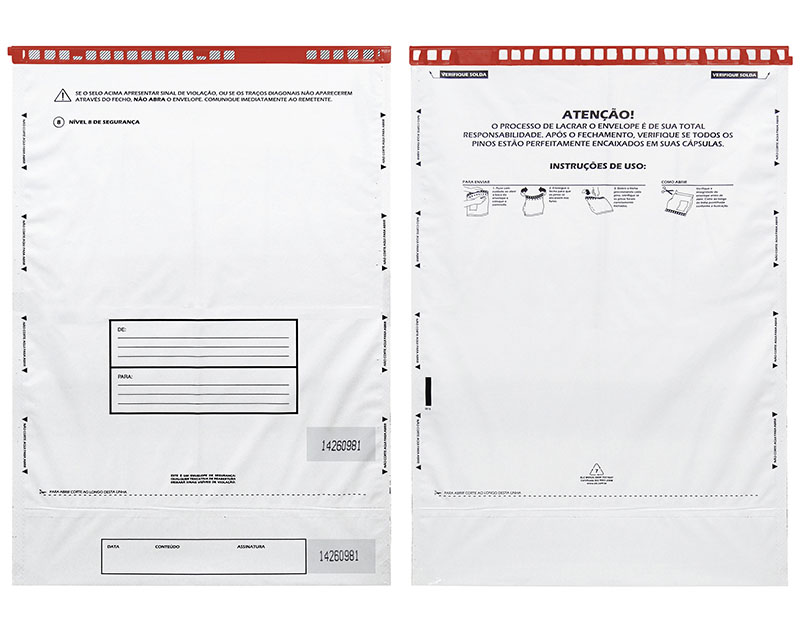 Os Envelopes de Segurança são Fabricados em filme plástico branco opaco, com instruções de segurança e manuseio.