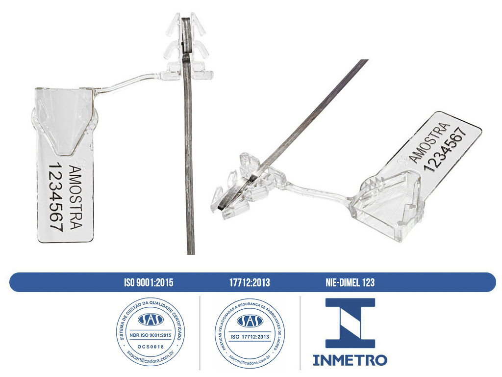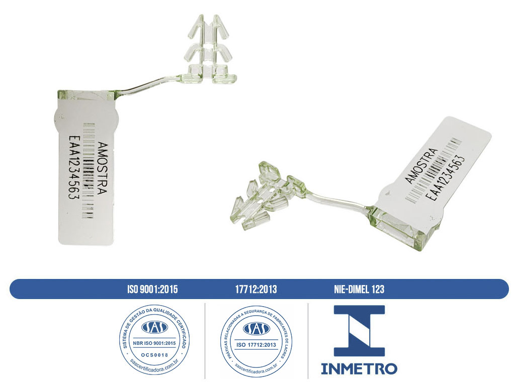 O Lacre plástico Tik Mini é fabricado em uma só peça, onde a cápsula é ligada à âncora de travamento por um fio. Uma vez introduzida, sob pressão, na cápsula, é impossível soltar a âncora sem deixar evidência de violação. Fabricado em policarbonato com resistência às intempéries por mais de 20 anos, utiliza fios metálicos (arame) inoxidáveis. Possui numeração única, impossibilitando duplicidade do lacre, porque em sua fabricação não ocorre repetição do mesmo número.
