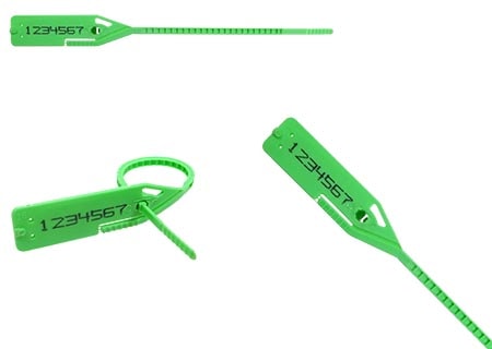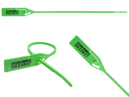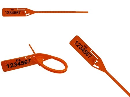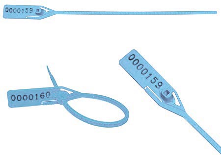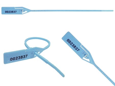 Lacre de segurança Riplock C2 IJ #061I21PP – codificados com 7 dígitos e personalização em letras de nosso padrão. Comprimento total 240 mm.