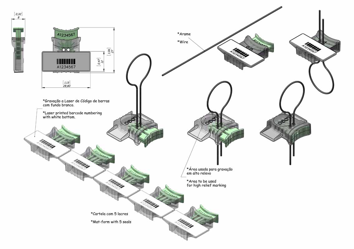 *No Lacre de segurança ALock (SLM e CB) o arame é comercializado separadamente em rolos ou pré-cortados nas medidas padrão, mediante consulta.