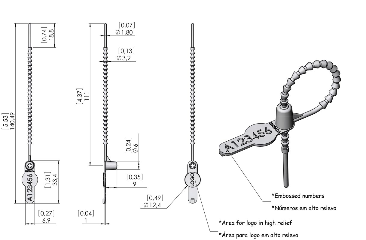 Lacre Plástico Espinha de Peixe Elckette N - Codificação em Alto Relevo