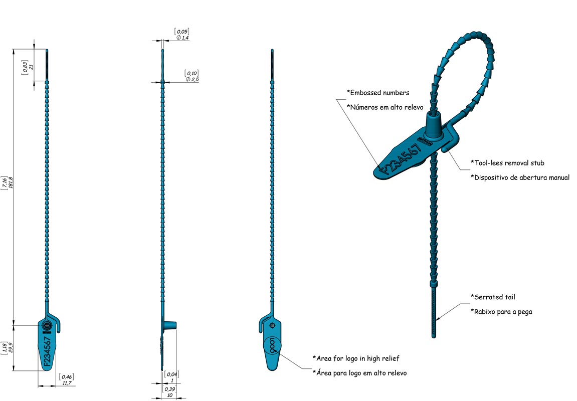 Comprimento ajustável ao aperto pretendido. Codificação e personalização moldados em alto relevo. Resistênte à tração 25 MPa.