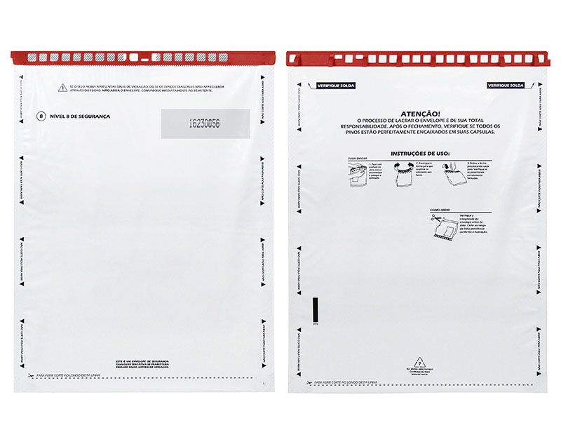 Os Envelopes de Segurança são Fabricados em filme plástico branco opaco, com instruções de segurança e manuseio.